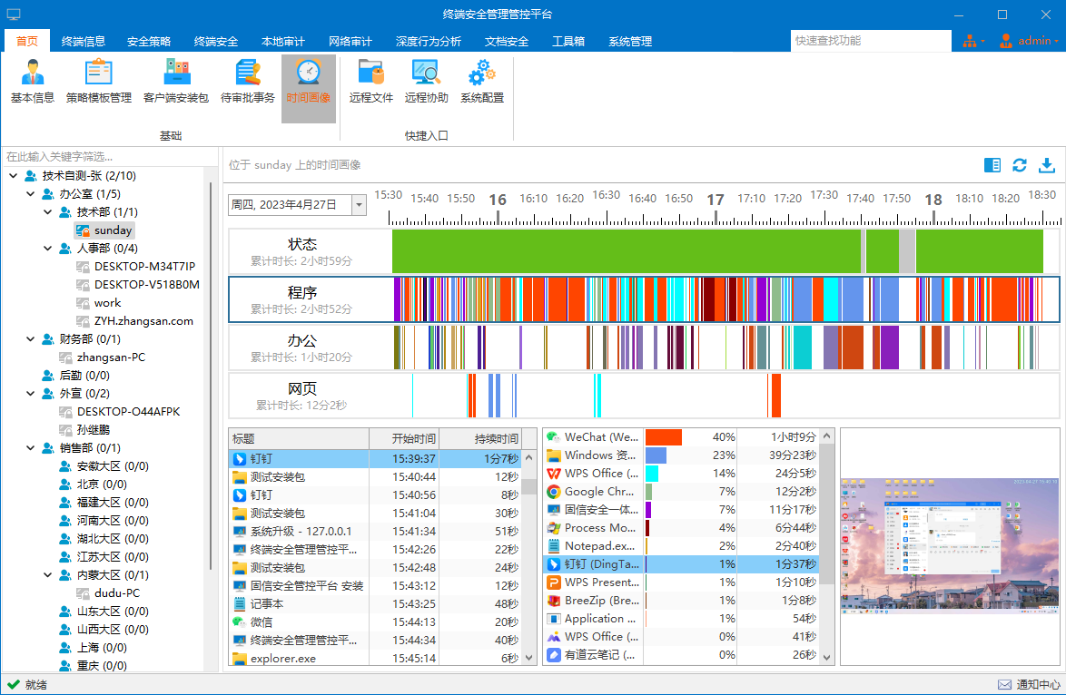 终端计算机作为存储设备,记录了大量重要涉密数据,同时作为相对开放的网络接入设备,其安全性直接关系整个内部网络的整体安全。随着信息安全技术的不断发展,终端计算机安全管理转向精细化、便捷化、不能再进行以设备为单元的粗粒度管理模式,终端管理者更加关注设备使用者操作行为及操作便捷性。